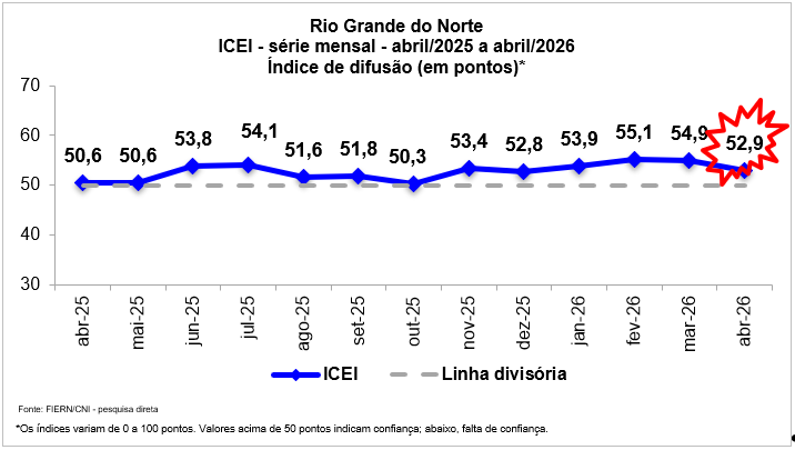 Para maiores informações sobre o ICEI, acesse o link: https://www.fiern.org.br/wp-content/uploads/2026/04/ICEI_abril-2026.pdf