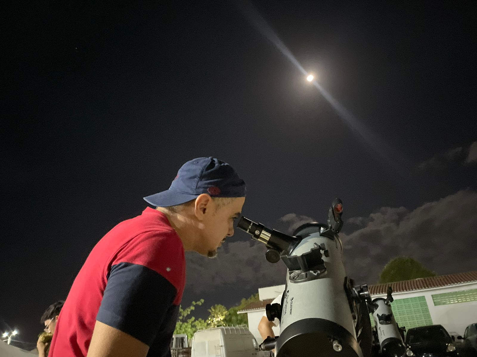 O projeto “Exposição, Ciência e Astronomia no Sertão Central do Cabugi”, coordenado pelo professor Gustavo Rebouças (UFERSA – Angicos), apresentou observações astronômicas com telescópios e sessões de planetário. Segundo o professor Gustavo, mais de 300 pessoas, entre crianças, estudantes e famílias inteiras, já passaram pelo observatório na primeira noite de atividades. “É muito gratificante ver o brilho nos olhos das crianças ao observarem a Lua e os planetas. A expectativa é superar esse número nas demais noites, e estamos preparados para receber ainda mais visitantes”, destaca Gustavo. Durante o evento, o professor conduz as atividades na companhia de dois bolsistas, que auxiliam nas ações e na interação com o público.