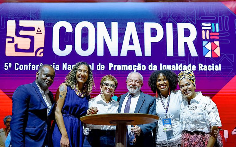 O presidente Luiz Inácio Lula da Silva participou nesta segunda-feira (15/9) da cerimônia de abertura da 5ª Conferência Nacional de Promoção da Igualdade Racial (Conapir), um espaço multicultural e de debates conjuntos da sociedade civil e do poder público. A conferência ocorre até a próxima sexta-feira (19), no Centro de Convenções Ulysses Guimarães, em Brasília, com o tema Igualdade e Democracia: Reparação e Justiça Racial.